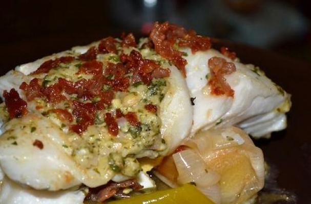 Spoon 1 tablespoon of the butter mixture on top of each fillet then transfer the skillet to the oven. Cook for 2 minutes or until cod is cooked through and opaque in the center.