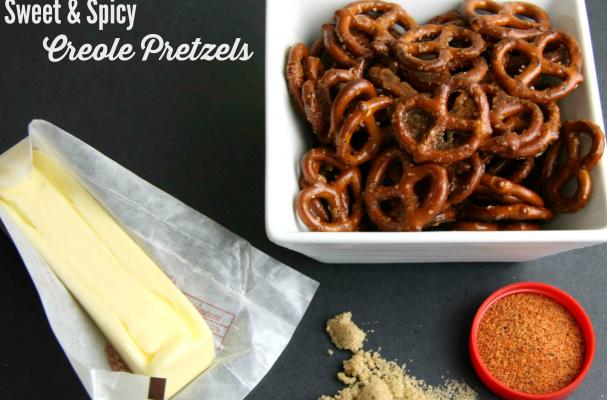 You could just open a bag of pretzels and get to snacking OR you could make these fabulous Sweet & Spicy Creole Pretzels! 4 ingredients, a few minutes to make the sweet & spicy glaze and just 10 minutes in the oven. I love snacks that hit on both the sweet and salty notes and these pretzels have the added bonus of spicy from a bit of Creole seasoning! Bet ya can’t pop just one!
