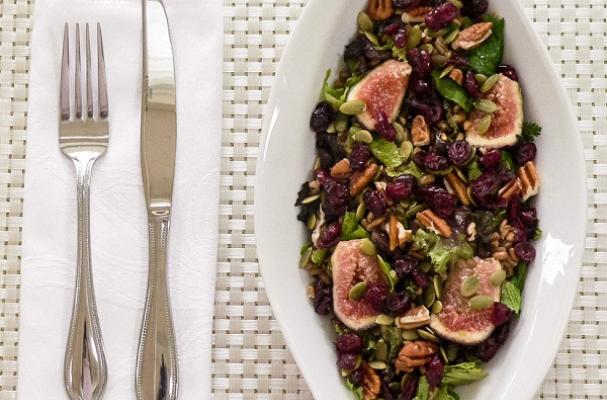 Roughly chop the salad leaves and cut the fresh figs into 4 slices.