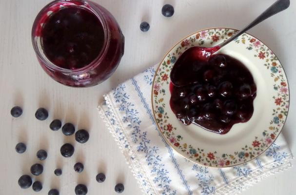 Canned blueberry sauce to enjoy all year around over pancakes, waffles or even cake
