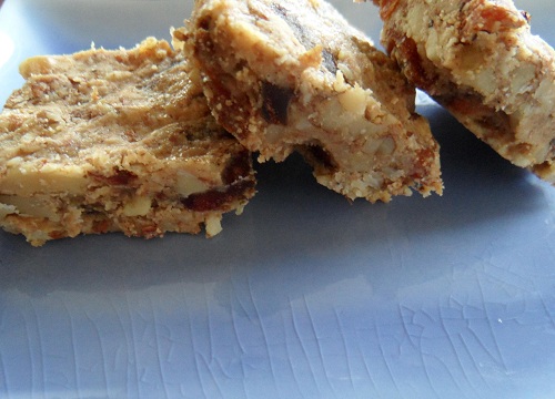This wheat-free and sugar free energy bar recipe includes walnuts, almonds, peanut butter, apricots and dates. It is easy to make and is packed with protein and vitamins!
