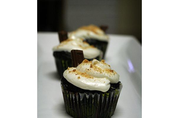Prepare cake mix for cup cakes; let cool. Use the 1 package fluffy white frosting; remove the paper from cupcakes and place top down and bottom up. Frost the side only. Mix orange marmalade and lemon juice. Spread this mix on the bottom of cupcake. Place graham cracker crumbs on wax paper. Frost it. Place crumbs on the bottom of cake. Decorate top with licorice.