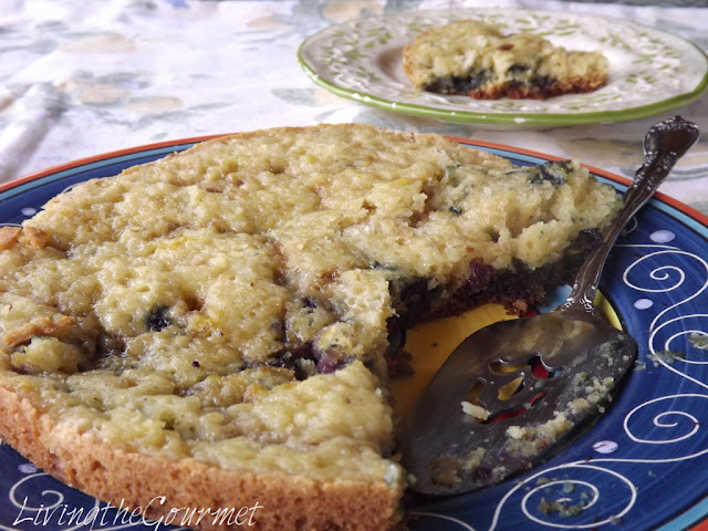 Place the batter in the prepared pan. Place the blueberries over the batter and gently press down and sprinkle with an extra tablespoon of sugar over the top.