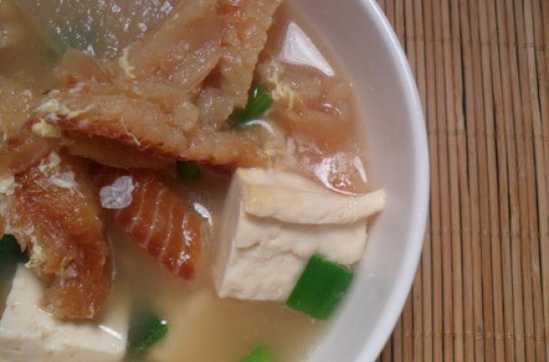 We had ourselves a light and healthy bugeo guk (dried pollack soup) with our meal tonight. We have been holding off on this dish simply because it's a ripoff to buy at our local Korean market (we paid $13 for an 8 oz bag) and wanted to wait until our next trip to Chicago where we could buy some higher quality and less expensive Korean goods. Anyways, we bought it in the end and the taste alone proved its worth. Just some quick info, the soup is known as "hangover soup" with many alcohol-loving Koreans seeking this out after a hard night of drinking (I used to be one of them). It has a light taste and the fish pieces have a soft and inviting texture that goes perfect with a bowl of rice and some refreshing side dishes. There are several variations but I included the basics down below.