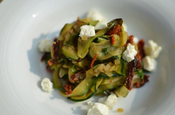 Zucchini Ribbons with Goat Cheese and Infused Herb & Chilli Oil