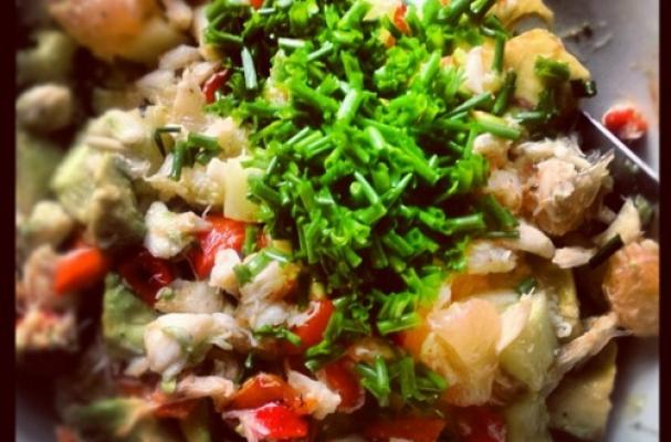 Add 1 tablespoon of the oil, 1 tablespoon of the reserved grapefruit juice, 1 tablespoon lemon juice, and season with salt and pepper and a couple of shakes of Tabasco.
