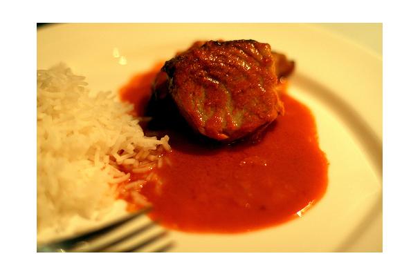 Stir in the tamarind pulp and liquid, or the tomatoes, and the coconut, and continue to cook for 2-3 minutes.