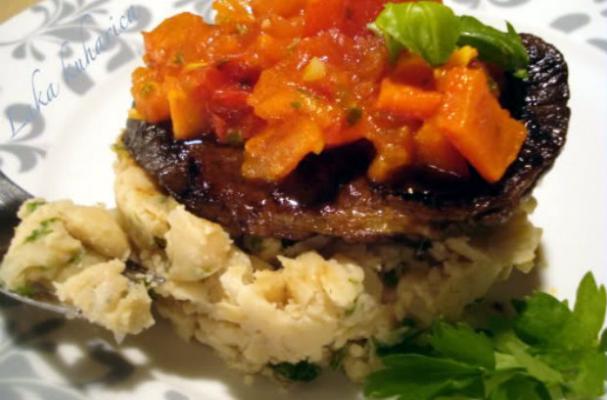 Aromatic beef with tasty bean mash and tomato salsa. Healthy meal that tastes simply wonderful (no cholesterol, rich in potassium, poor in calories).