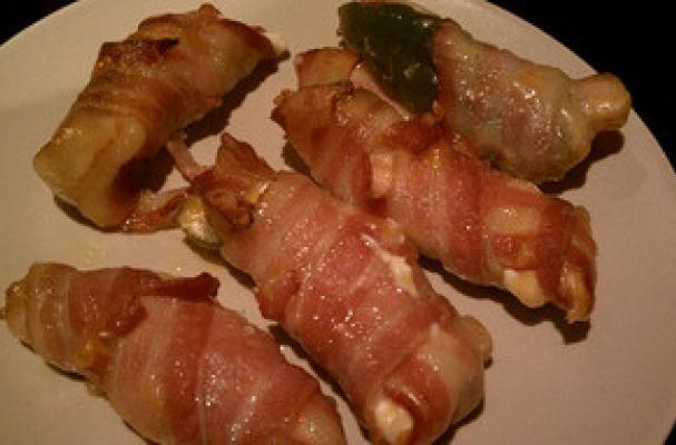 Prepare grill for Medium direct heat. Soak toothpicks in water. Combine cream cheese and jack cheese in a bowl. Cut the top of the jalapenos and discard the seeds. Stuff 2 tbls of the cheese mixture into the jalapenos and wrap bacon around them making sure to cover the top. Poke a toothpicks through the jalapenos making sure to secure the bacon. Grill over the direct heat turning frequently until the bacon is fully cooked and the insides of the chile is hot. Serve on a platter with sour cream.