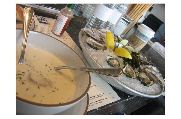 Clean and pick over oysters as for Oyster Stew; reserve liquor, add oysters slightly chopped, heat slowly to boiling-point, and let simmer twenty minutes. Strain through cheesecloth, reheat liquor, and thicken with butter and flour cooked together. Scald milk with onion, celery, mace, parsley, and bay leaf; remove seasonings, and add to oyster liquor. Season with salt and pepper.