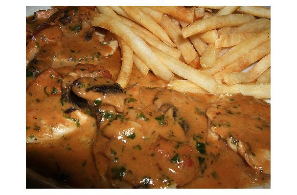 Arrange chicken breasts in a buttered flat pan. Sprinkle with salt and pepper and bake at 350 degrees for 30 minutes. Remove from oven and let chicken cool 15 or 20 minutes. Spread chicken with mustard. Mix cheese, bread crumbs and Italian seasoning. Sprinkle over chicken. Bake at 350 degrees until cheese melts, about 10 or 15 minutes. Yield: 4 servings.