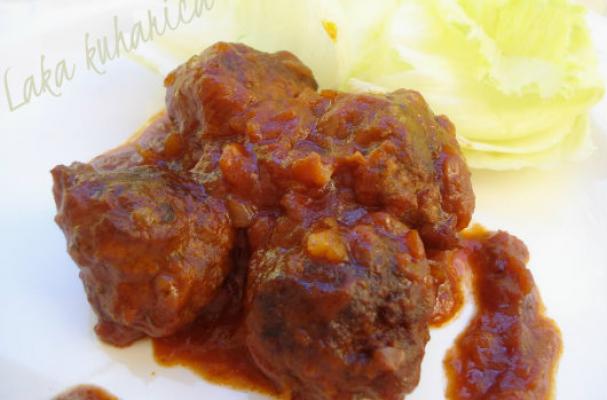 Remove meatballs from the baking sheet and place in a suitable pan, cover with the sauce.