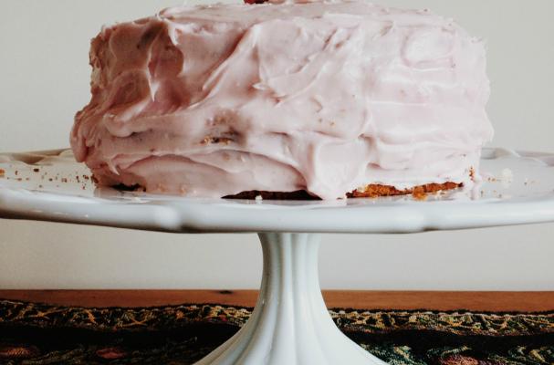 Gently spoon out strawberry frosting. Let your cake rest so the frosting sets before serving.