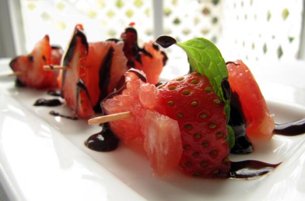 Bite Size Fruit Skewers with Champagne Chocolate Drizzle