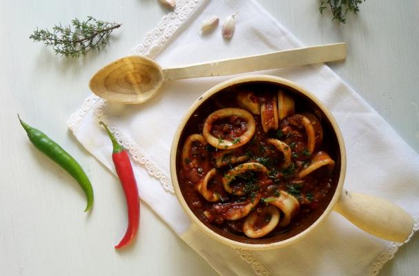Tender calamari rings in an incredibly aromatic tomato sauce