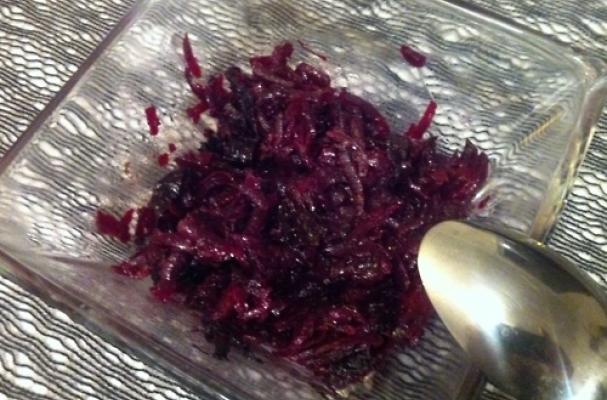 Whet the beets are cooked, drain the water, let them cool down and then peel and shred the beets.