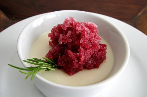 Plating: Garnish the panna cotta with a couple of tablespoons of the granita with a fresh rosemary sprig.