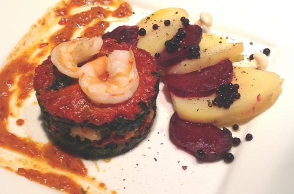 Shrimp & Spinach Stacks with Red Pepper Sauce