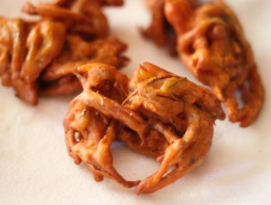 Kanda bhaji also known as Khekda bhaji is a type of fritter made from sliced onions seasoned with spices, besan flour and deep fried in oil