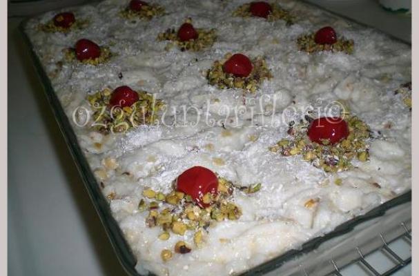 5.Sutunu cektikten sonra uzerini yesil fistik badem ve kiraz sekerlemeleri ile susleyin.