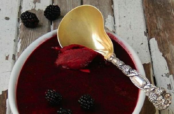Add all the ingredients in a medium saucepan and bring to a boil over medium heat while stirring. Once the sugar has dissolved and the berries will have just about been heated and softened the whole way through. Turn off the heat and pour the entire mixture into a fine mesh strainer that is set over a bowl. Squash the berries into the mesh with the back of a wooden spoon to separate out the seeds. Once you’ve squashed out as much blackberry yumminess as possible put the bowl in the freezer and head off to enjoy the rest of the day.
