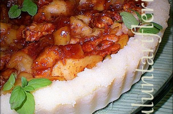 Tart kalibini veya yuvarlak borcam tepsiyi islatip pisirilen karisimi icine dokun. Kasikla yan duvarlari yuksektin.( resimli yapim asamasinda gorundugu gibi )