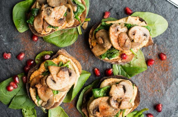 Mushroom Crostini with Harissa Hummus