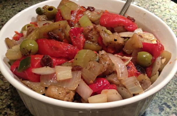 Heat a large frying pan with 2 tablespoons olive oil. Add the cubed eggplant and sauté until slightly golden. Add the onion, celery, jalapeño and garlic and continue to sauté until softened.