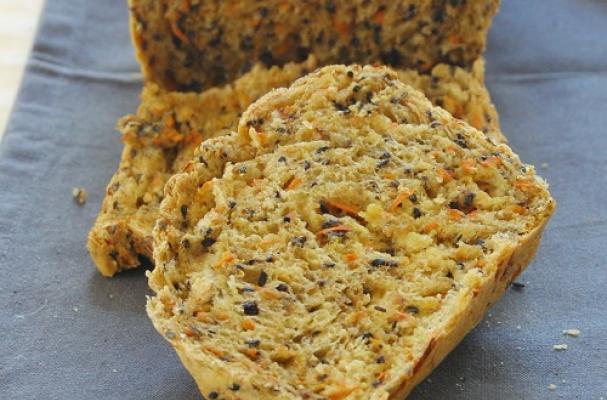 In a bowl, add carrots, orange juice, warm water and yeast and let it sit for 5 minutes. To it add olive oil, both flours and salt. Knead it into a tight dough. Cover and let it sit for 10 mins.
