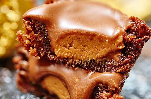 Reese’s Peanut Butter Cup stuffed Brownie Bites! An ooey, gooey brownie made even better with a melty peanut butter cup!