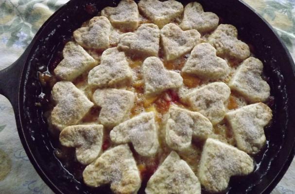 Using a cookie cutter cut the crust into shapes and arrange them on top of the fruit.
