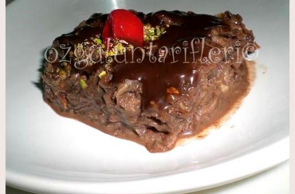 3.Buzdolabinda 1-2 saat beklettikten sonra dilimleyerek uzerini cikolata sos kiraz sekerlemeleri ve yesil fistikla susleyip servis edebilirsiniz.