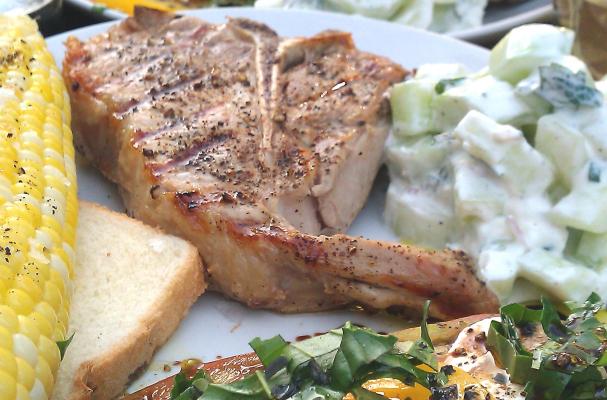 Speaking of veal – pepper is all these steaks need; veal is so tender and delicious on its own, and I really wanted to enjoy just the unadulterated flavor of the meat. Besides, my thought is that the cucumber salad will be a lovely accompaniment to this dish – sort of a riff on lamb and tzatziki.
