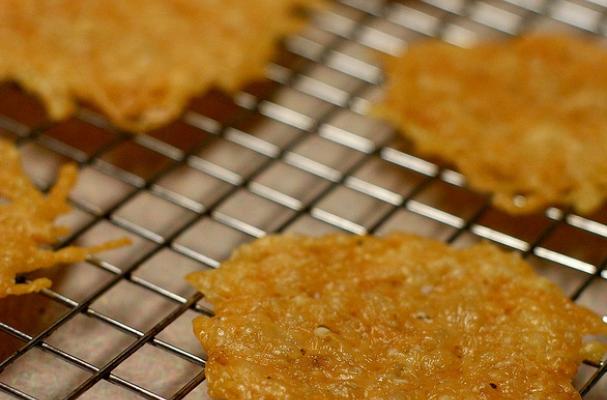 Parmesan crisps, or frico as they are known in Italy, are a delicious and beautiful garnish to dishes such as risotto, pasta, salads, etc. While they are still warm, you can also press them into a muffin tin to make miniature edible bowls - perfect for hors d'oeuvres. Add your favorite herb(s) for additional flavor.