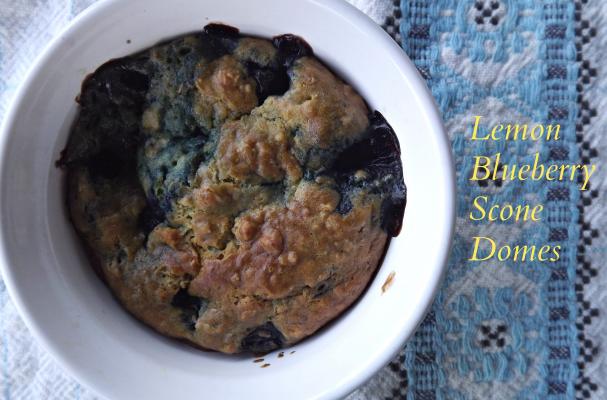 In a medium bowl, combine the flour, oats, sugar, baking powder, baking soda, and salt. Using a pastry blender or the back of a fork, bled the cold margarine until it resembles a coarse meal. IN a small bowl, combine the lemon zest, lemon juice, and milk, then add the liquid to the dry meal and mix until just combined. Add blueberries and gently combine.