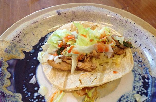 Heat the corn or flour tortillas, over an open flame or wrapped in a dish towel in the microwave, to make then more pliable, then add some chicken, cheese, lettuce and other toppings. Finally add your favorite taco sauce and you are good to go. Enjoy!