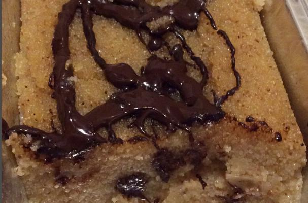Remove from heat and Keep stirring until all of the syrup is combined with the semolina. Then add the chocolate chips and mix.