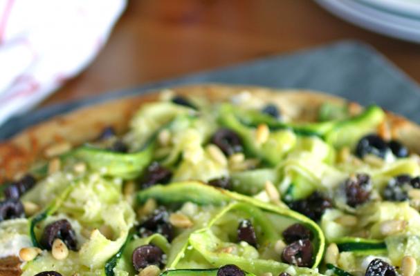 One of the great things about pizza is that you can use so many different ingredients and it still turns out to be a crowd pleaser. I've never thought about adding zucchini to pizza but this version is amazing! Light, tasty and pretty!