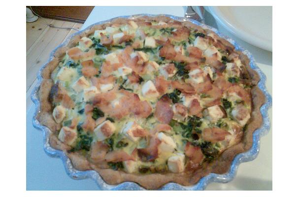 Roll pastry and fit into pie pan. Prick well and bake at 425 degrees for about 10 minutes or until very lightly browned. Remove from oven and cool slightly. Reduce oven temperature to 375 degrees. Flake half of salmon into pie shell. Add a layer of broccoli, then of sliced egg. Combine remaining ingredients. (Save half of the cheese.)