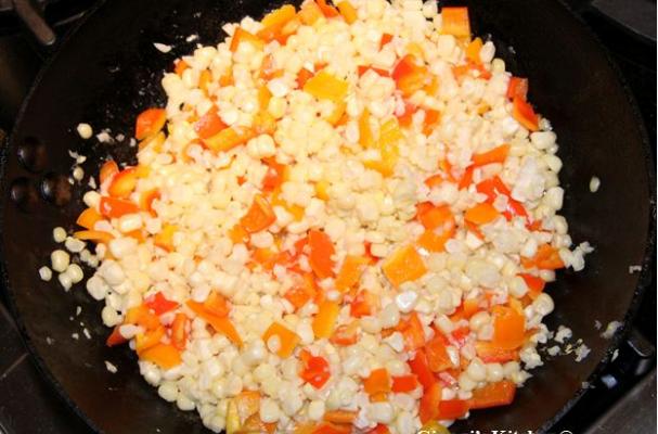 In a heavy skillet cook the corn in the oil over moderately high heat, stirring for 5 minutes.