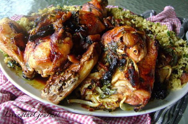 Baked Quartered Chicken with Dried Apricots!!! & Delicious Rice!!!
