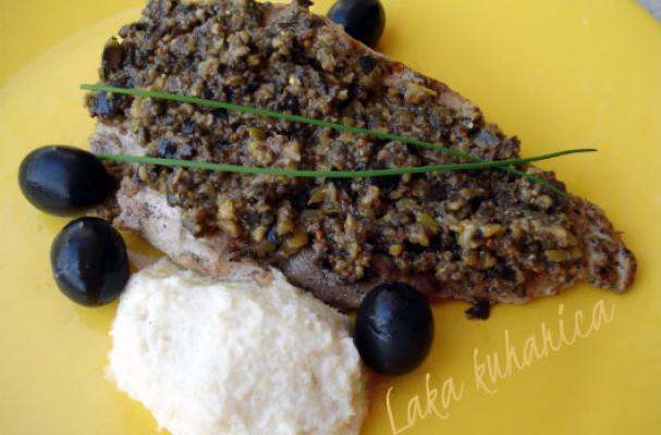 Succulent pork with aromatic olive sauce.