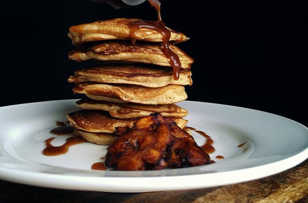 Tostone Stuffed Pancakes with a Chocolate Peanut Butter Syrup
