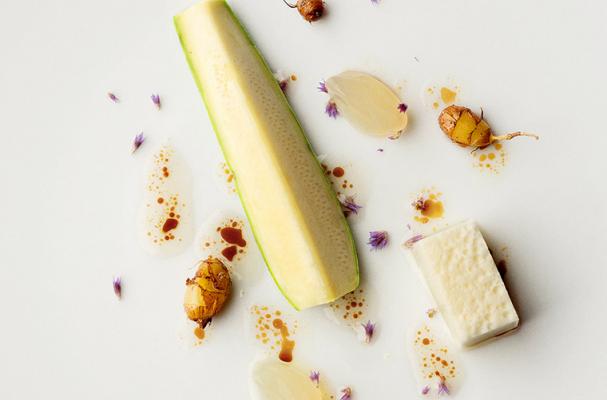 Let’s add a Michelin recipe to our collection. Zucchini with grilled vegetables and chicken fat from Sebastian Frank.