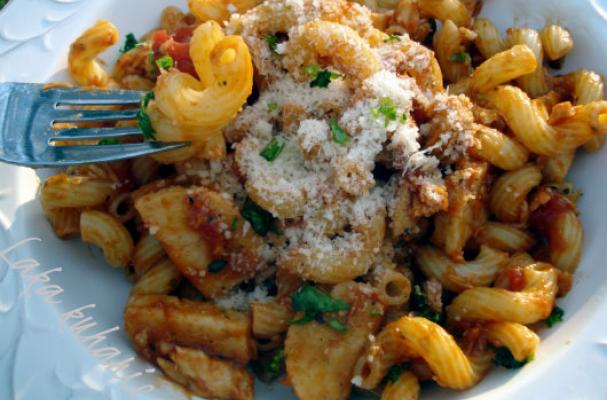 Combine the Cavatappi pasta with the sauce. If the sauce is too thick, add a spoonful of pasta cooking water.
