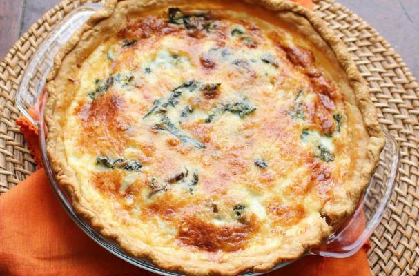 Delicious quiche with Swiss chard, mushrooms and aged gouda cheese.