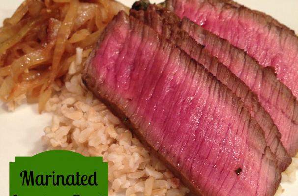 In my efforts to lead a healthier life day to day I've cut back big time on beef in our house. Every once in a while though I get in the mood for a nice piece of juicy steak and this Marinated London Broil hit the spot tonight!!! London Broil is a lean cut of meat which means if you cook it too long, it will become tough. This cut is definitely best on the medium rare side.