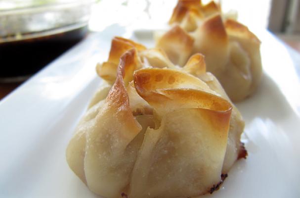 Baked Pork Flower Dumplings with Soy Ginger Dipping Sauce