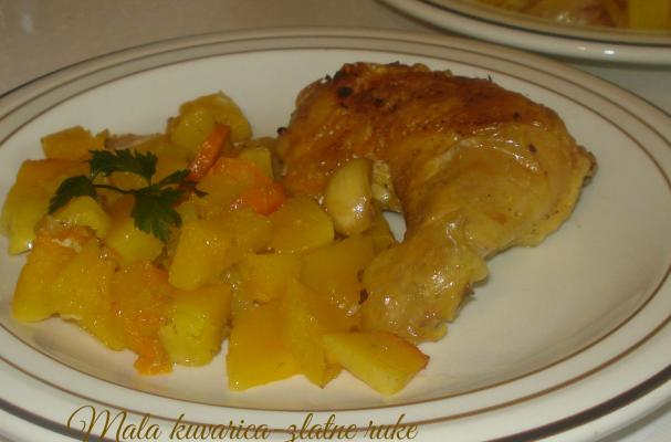 Bundeva , kraljica jeseni u kombinaciji sa krompirom i piletinom. Zdrava hrana, zdravlje na tanjuru.