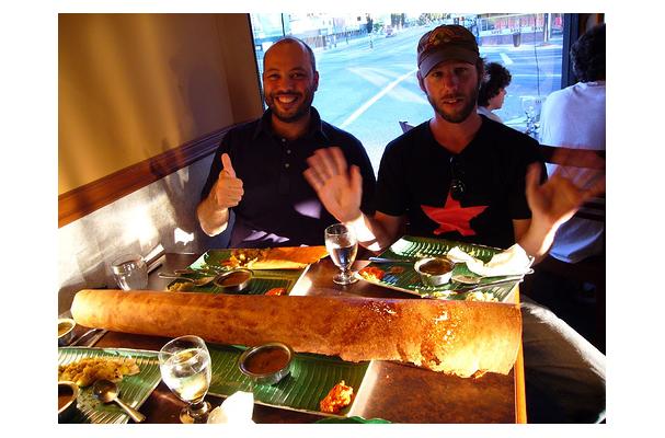 POUR about 300 ml dosa batter (on as wide a surface as possible), on a pre-heated, greased dosa plate in an oval shape. Allow it to cook on low heat for one-and-a-half minutes. Scrape the upper layer to get a thin and crisp dosa. Roll it up. Similarly prepare three more dosas. Serve immediately with coconut chutney and sambhar.